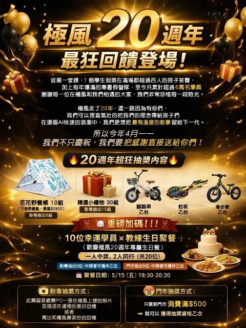 Copyright © 2023 極風直排輪體育發展中心 ,Ltd. All rights reserved 隱私政策 +