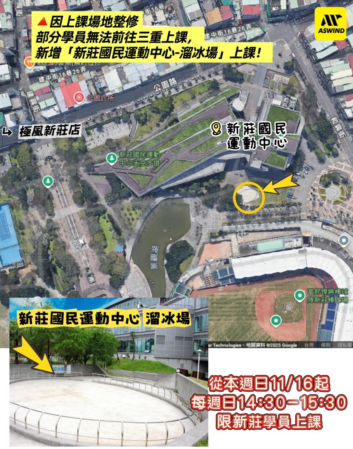 🛑上課場地位於新莊國民運動中心外面(如下照片),不需進入國民運動中心喔😉