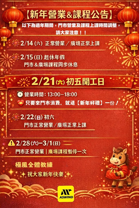 以下為過年期間門市營業與上課時間調整,請大家留意唷👇